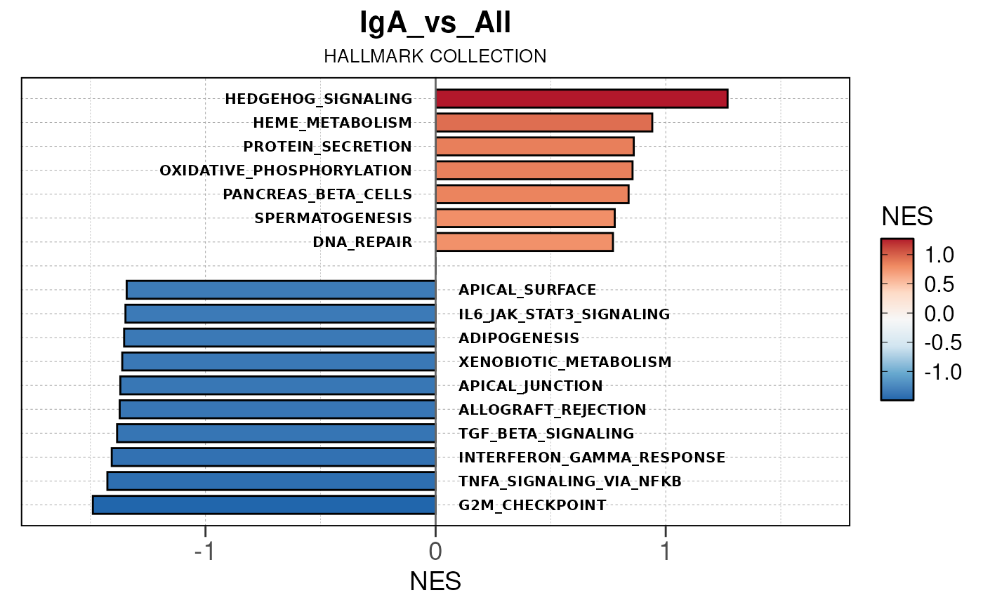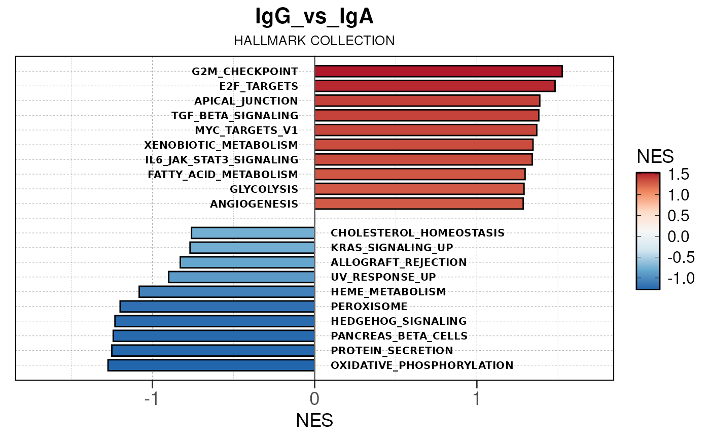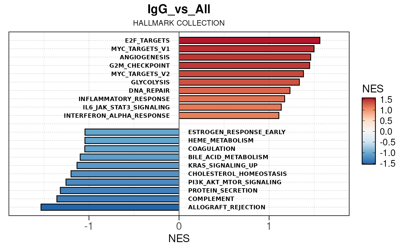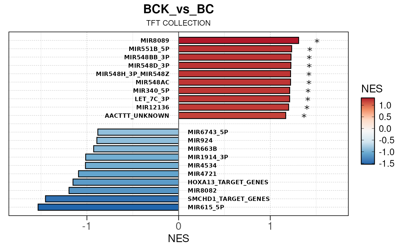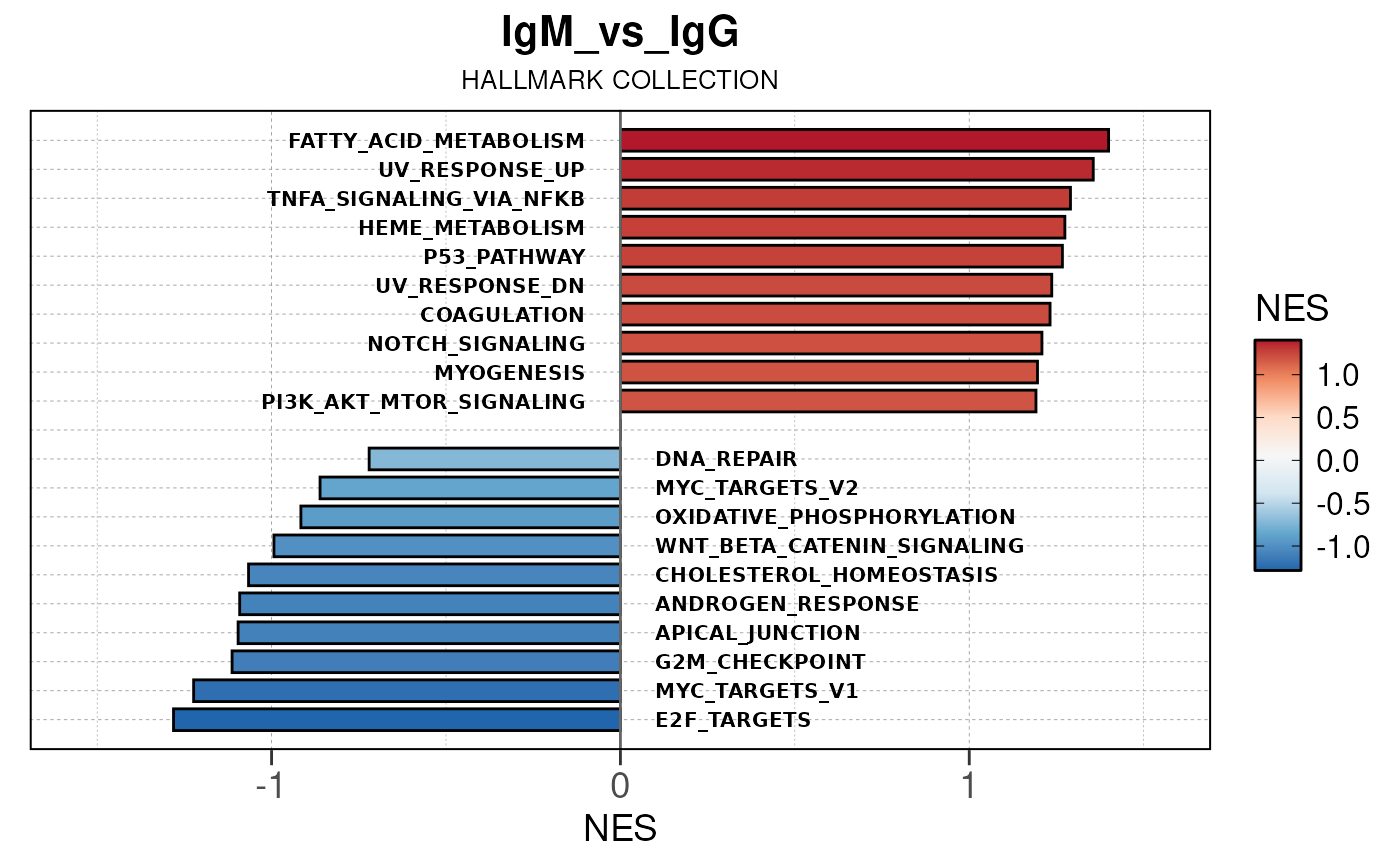 ## WARNING: There were 2 pathways for which P-values were not calculated properly due to unbalanced (positive and negative) gene-level statistic values. For such pathways pval, padj, NES, log2err are set to NA. You can try to increase the value of the argument nPermSimple (for example set it nPermSimple = 10000)